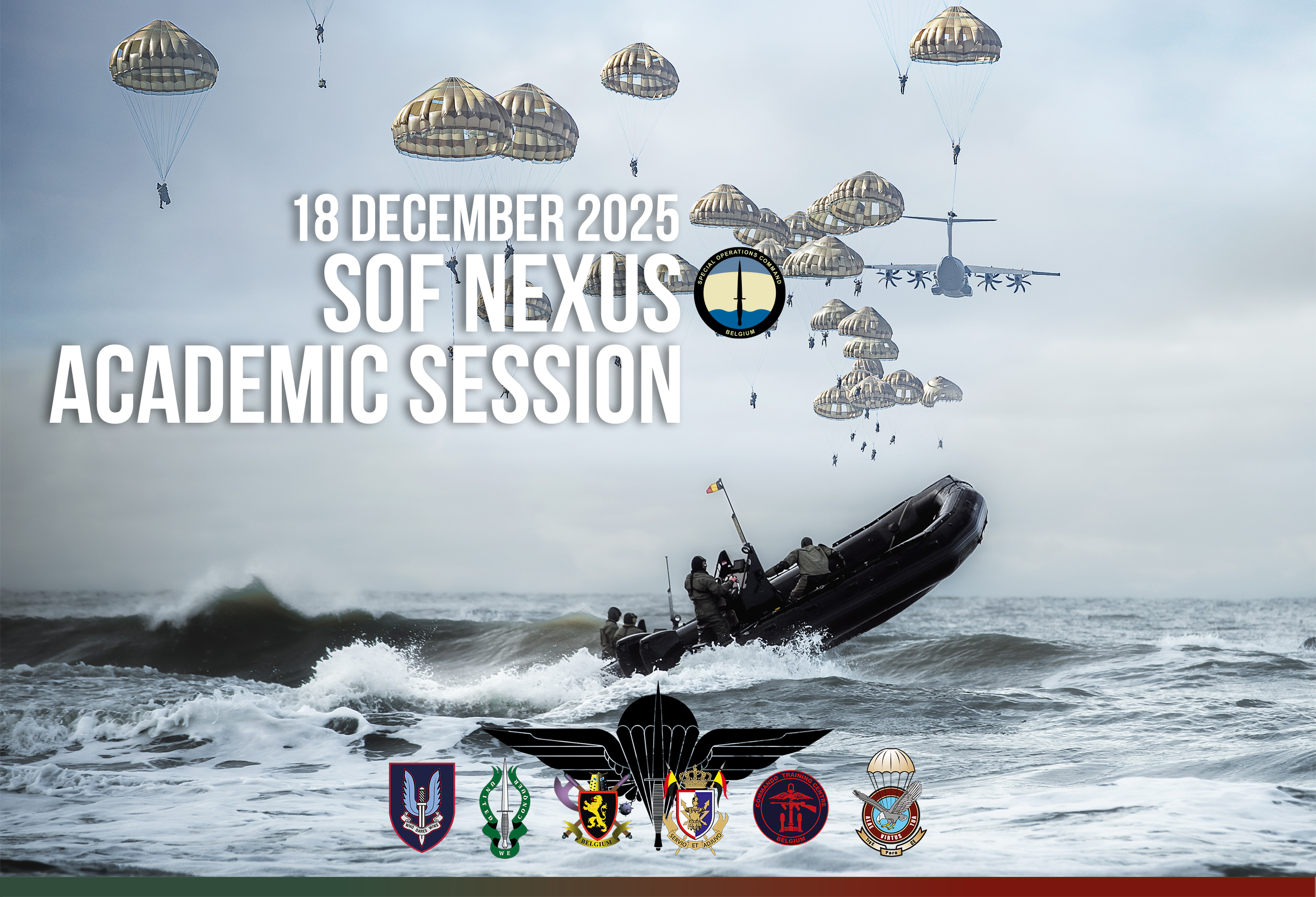 Colonel (GS) Peter Gysel, Colonel (GS) Kristof Van Poecke and Colonel (RES) Werner de JAMBLINNE have the pleasure of inviting you to SOF NEXUS & the yearly academic session 2025, organized jointly by SOCOM, the Special Operations Regiment and the Royal Association Para-Commando Officers.