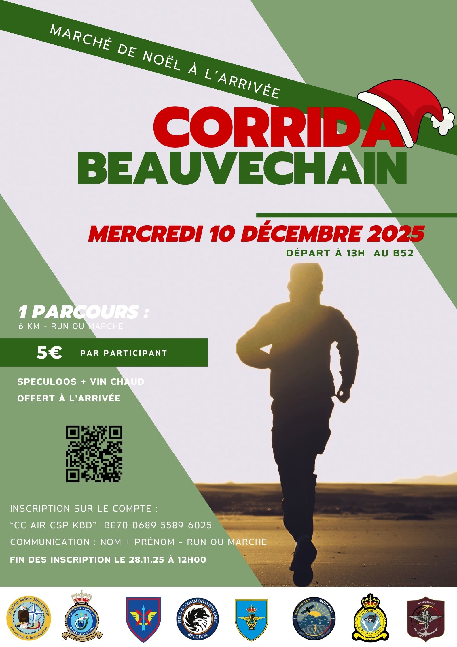 La fin d’année arrive à grands pas et, avec elle, ses activités sociales. La SECTION SPORT de Beauvechain vous invite le 10 Dec 25 à sa corrida et marché de Noël! (Sous réserve d’un nombre suffisant de participants)