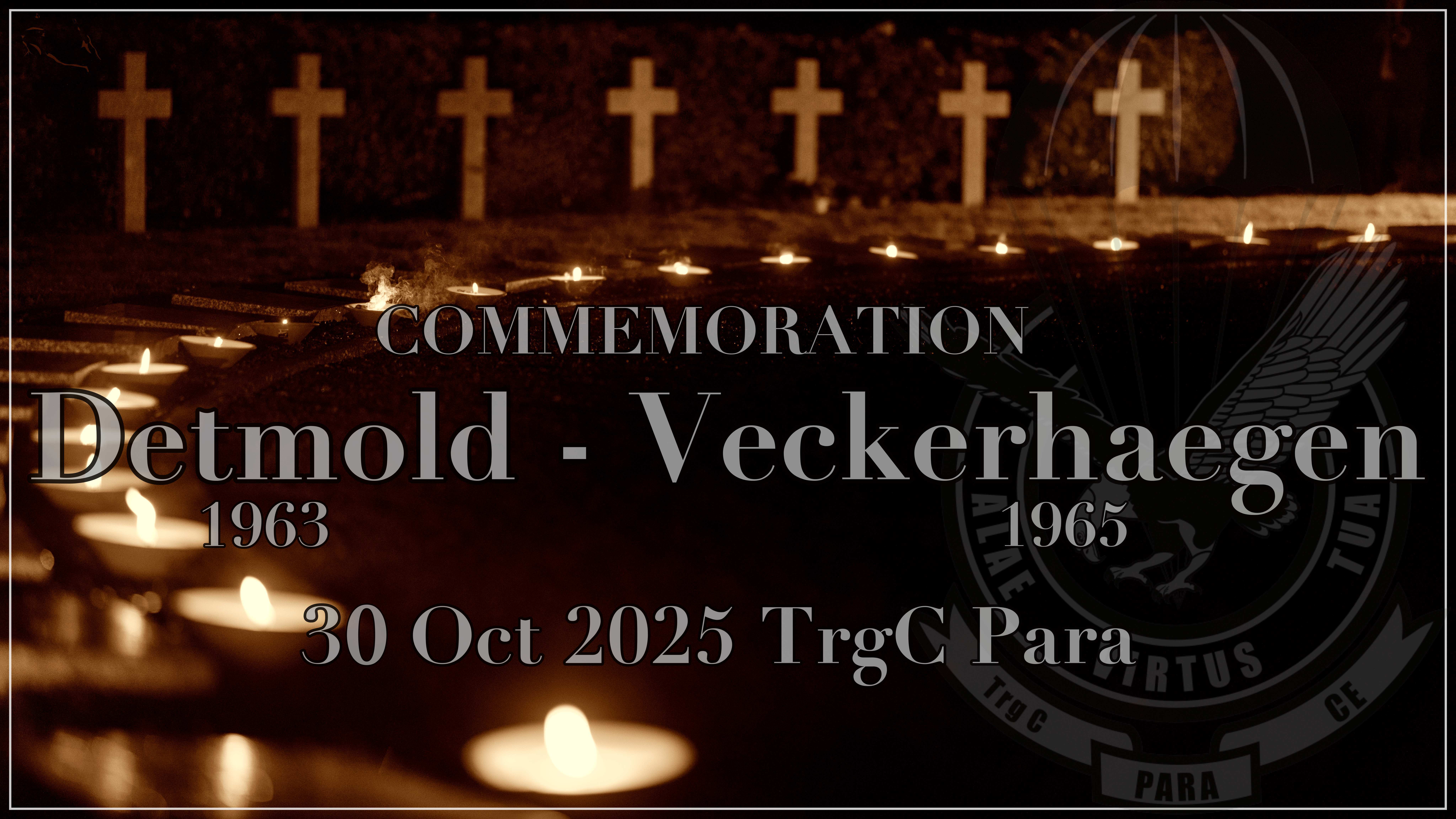 De Korpscommandant, de Officieren, de Onderofficieren, de Beroepsvrijwilligers en het burgerpersoneel van het Trainingscentrum voor Parachutisten organiseren op 30 oktober 2025 een herdenkingsplechtigheid ter nagedachtenis van de overledenen van de eenheid.