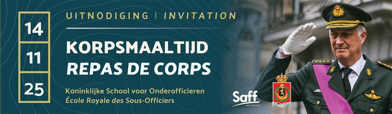 Op 14 november 2025 organiseert KSOO de Korpsmaaltijd te ere van "Koningsdag". Dit is de symbolische gelegenheid om onze gehechtheid, respect en waardering aan onze Opperbevelhebber uit te drukken. De toast is verplicht voor alle militairen! |