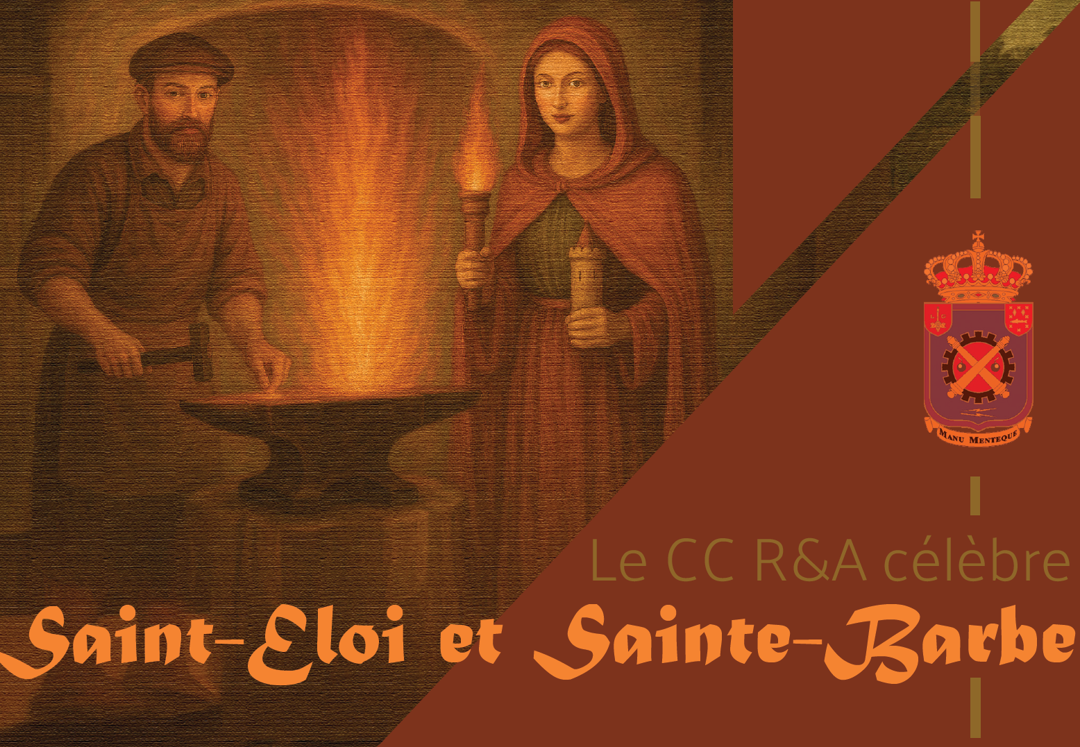 Le Colonel breveté d'état-major Christophe BRUYERE, Ing, Directeur du CC R&A, auquel s'associent les officiers, les sous-officiers, les volontaires et le personnel civil du Centre de Compétence Matériel Roulant et Armement, ont l'honneur de vous inviter aux fêtes de Saint-Eloi et de Sainte-Barbe qui auront lieu le jeudi 27 novembre 2025 au Quartier Major IFM Dufour à ROCOURT.