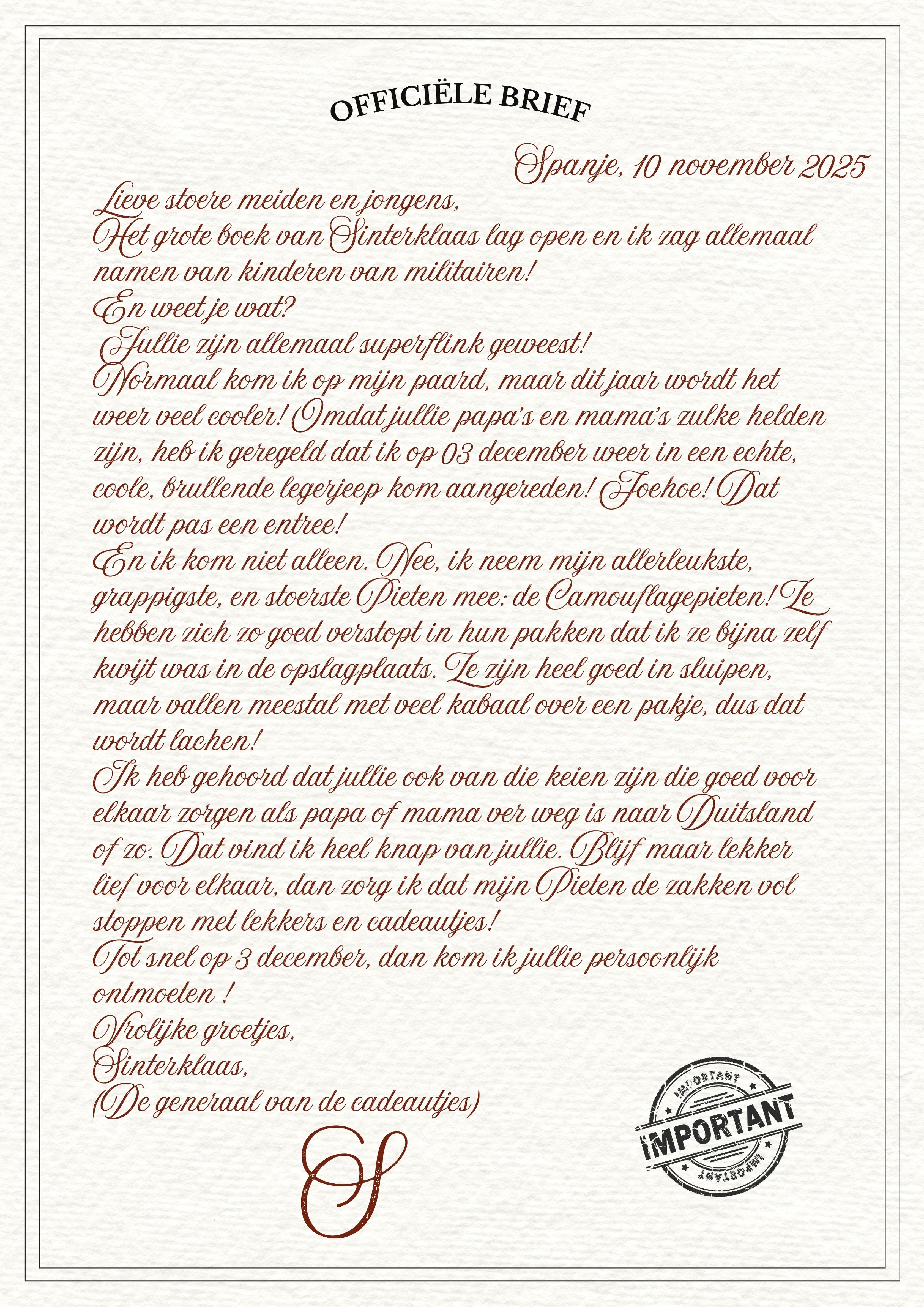 Voor kinderen en/of kleinkinderen tot en met 12 jaar van het personeel HQ Mot Bde.