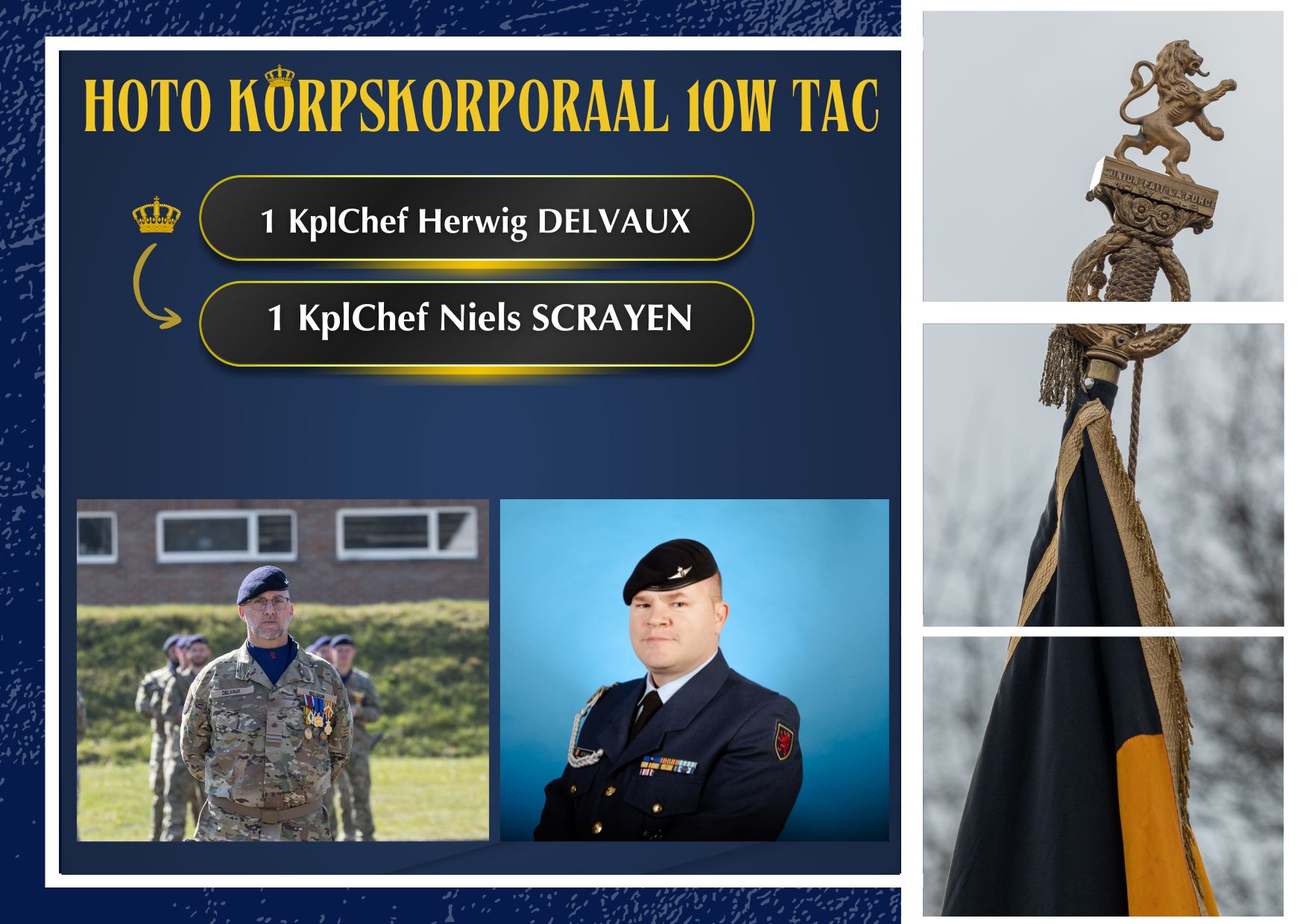 De Korpscommandant en de Korpsadjudant hebben de eer u uit te nodigen voor de inplaatsstelling van 1 Korporaal-chef Niels SCRAYEN als Korpskorporaal 10 W Tac ter vervanging van 1 Korporaal-chef Herwig DELVAUX.